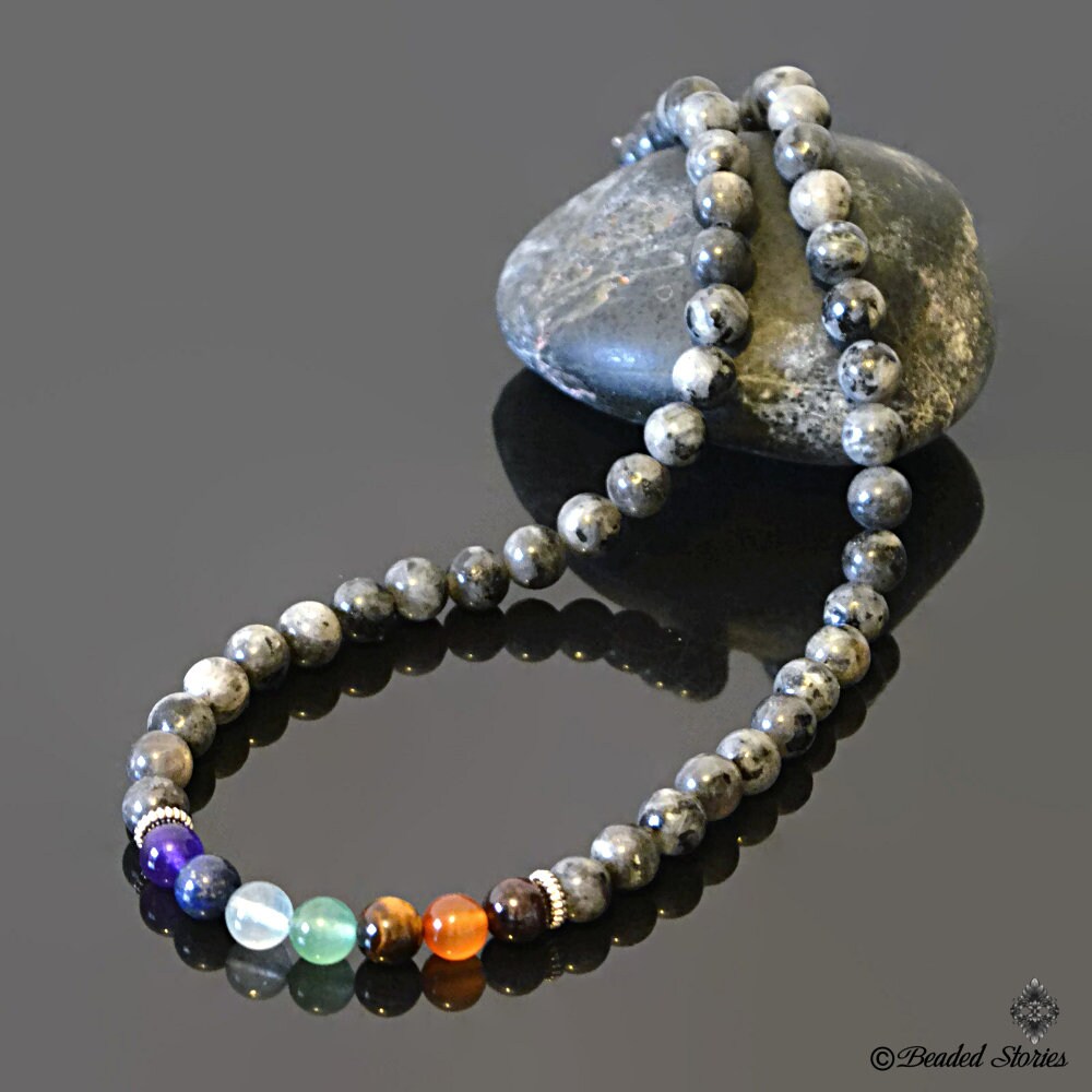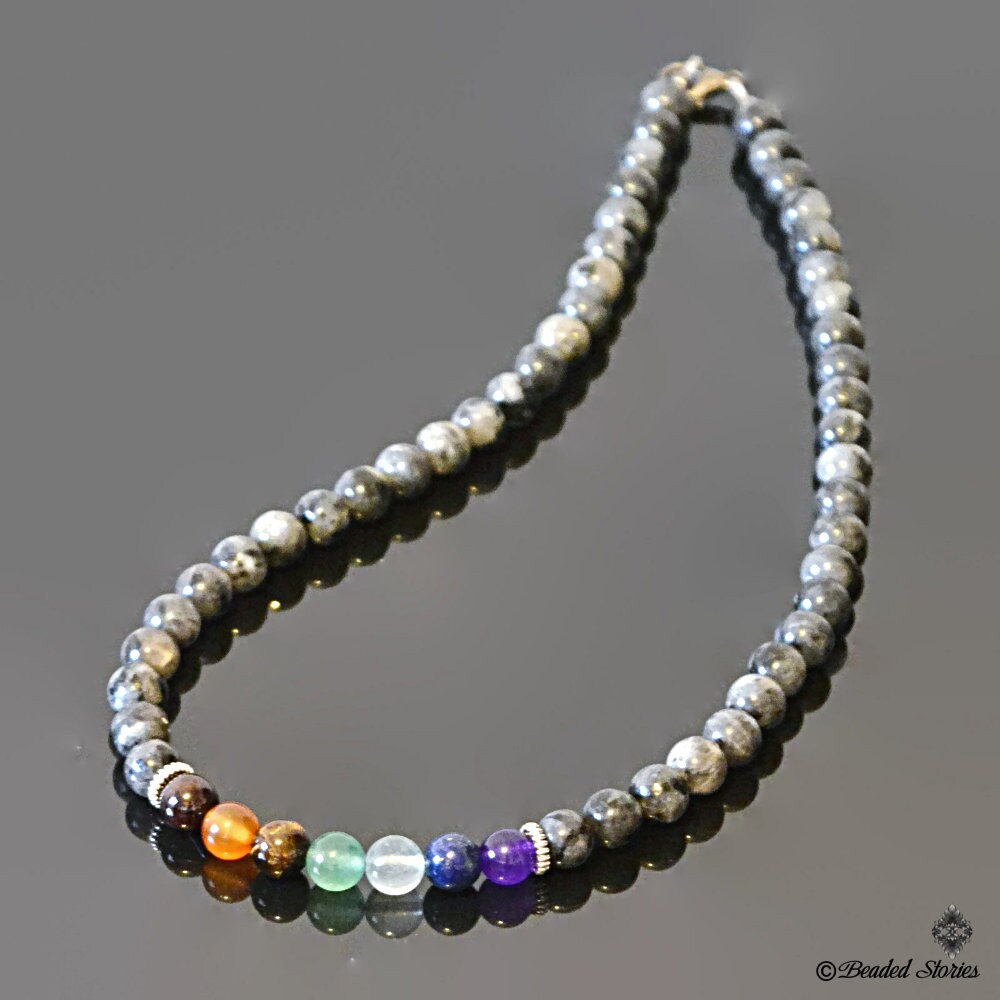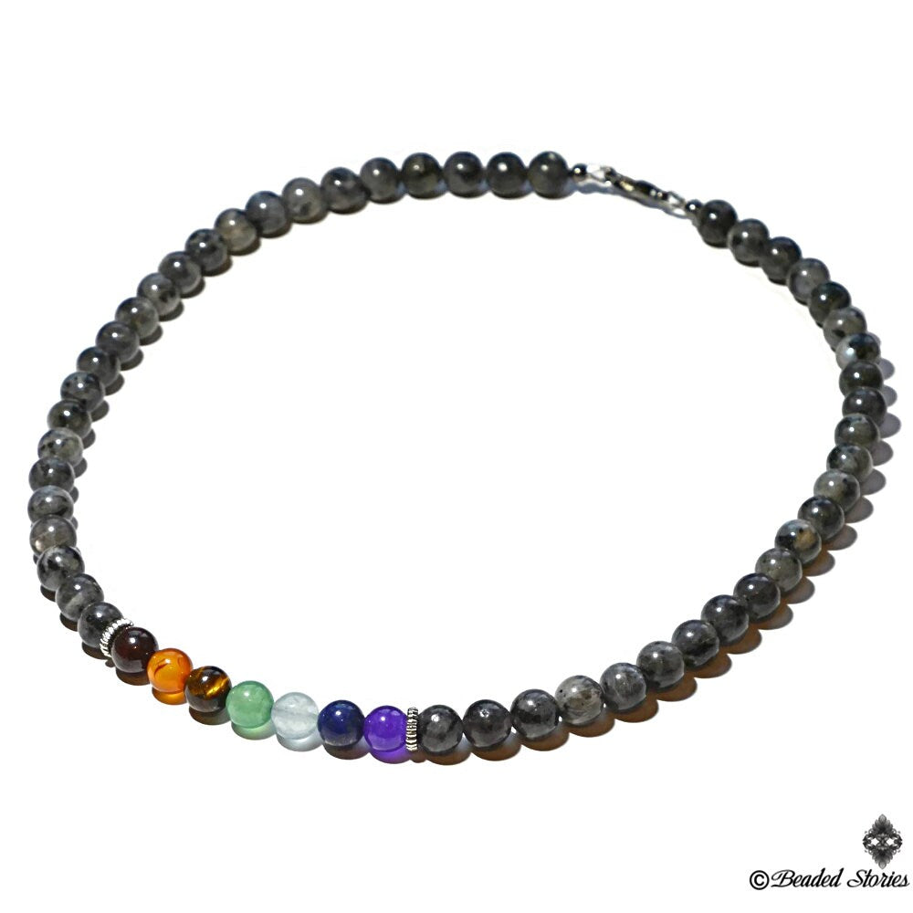 Men’s 7 Chakra Beaded Necklace, Handmade Gemstone Choker, 8 mm Adjustable